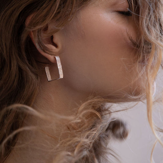 Aros Rectangulares Plateados Grandes Lignis Anchos