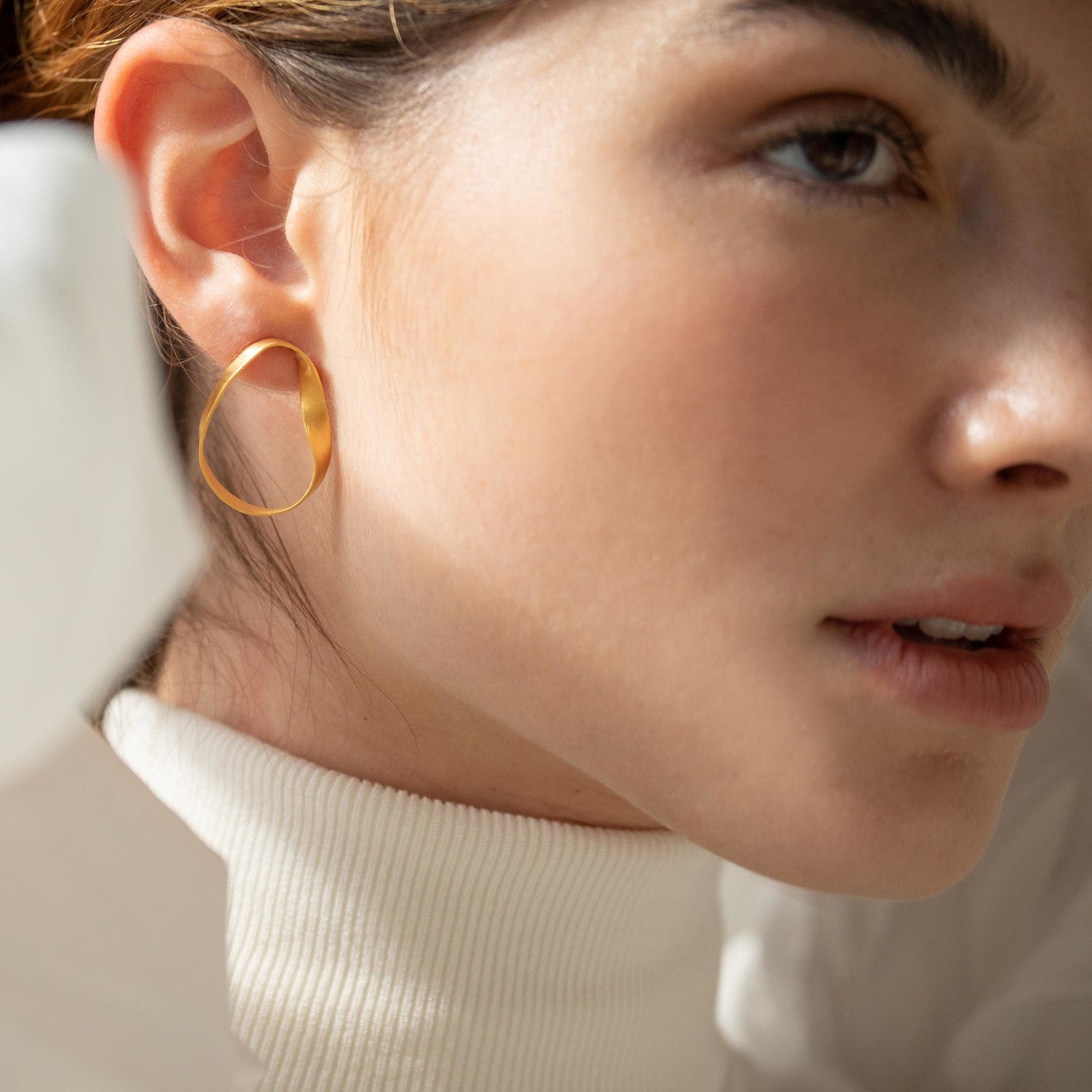 Con personalidad y movimiento, su forma orgánica abraza el lóbulo con un gesto sutil y atemporal.